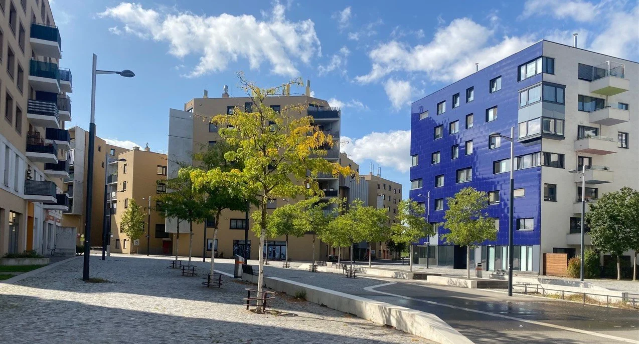 Aspern Seestadt is on the site of a former disused military airfield on the outskirts of Vienna. It is linked with an extension of the U-bahn and organized around a new lake at the centre of the site.