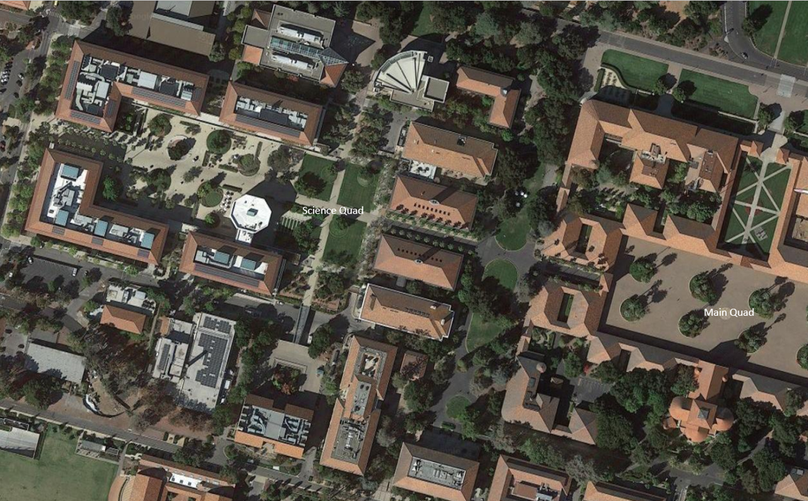 The Science Quad built since 2000 adheres to the original plan extending the east/west cross axis. All the new buildings have red tiled roofs and define the figurative space of the quad.