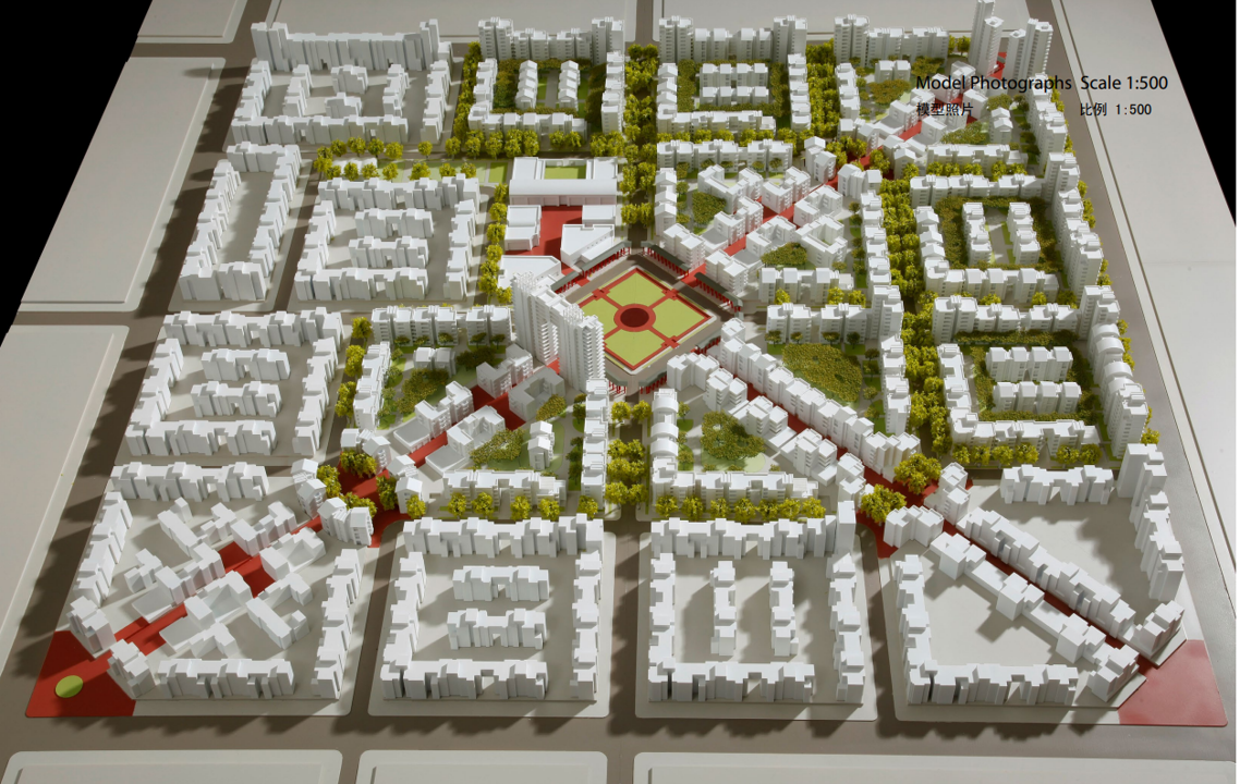 Hexie City is a demonstration project within the Binhai New Area outside Tianjin to create a high density compact transit-oriented development that meets China’s strict solar codes. It is in contrast to the ubiquitous pattern of freestanding highrise slab blocks set in a giant superblock. The project was promoted by the Binhai Director Mr Bin Ho, a former UC Berkeley graduate student who had been taught by Daniel Solomon and who wanted to demonstrate how compact small block New Urbanism could be applied in China.
